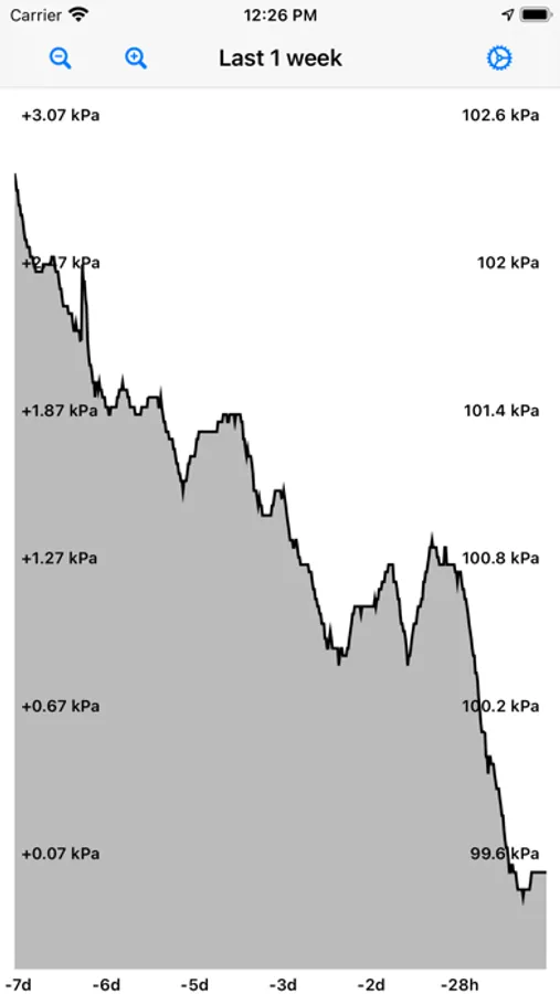 Carpathia records the barometric pressure at your current location. At any time, you can open up this app and see up to a year’s worth of recorded history.