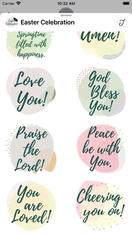 Open any message you have and at the bottom of the screen, you will see the buttons of your app list out. If you saw this app, please tap on it and the stickers collection will show up, if not, please slide to the left to find this app.
