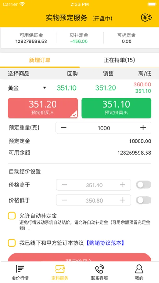 贵金属实物价格锁定结算服务使用工具