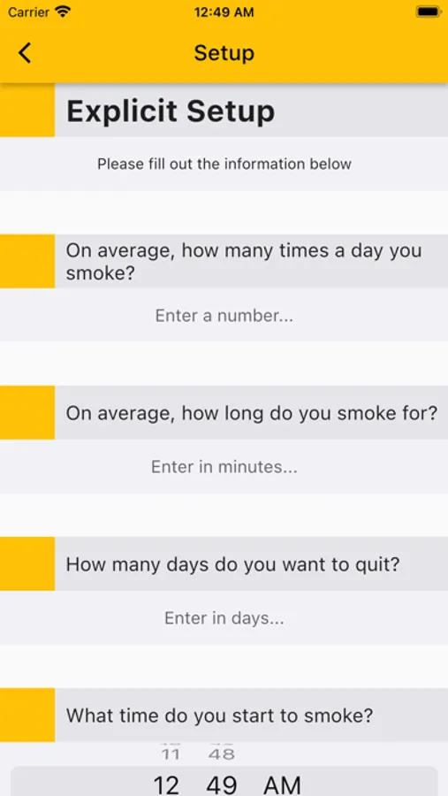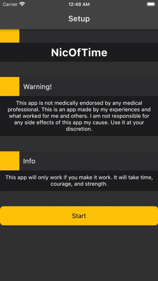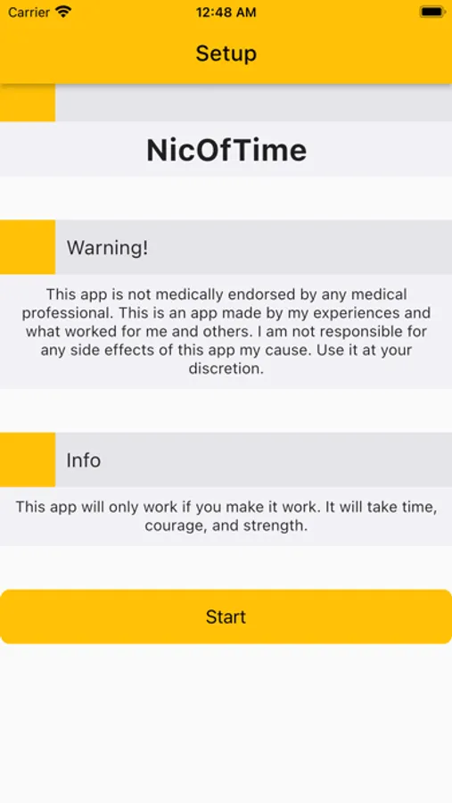 NicOfTime is a new way for people to stop their nicotine addiction, saving there life and money. By using an adaptive algorithm, it can scale to anyone's life. It will scale down their nicotine addiction day by day until your addiction has stopped.