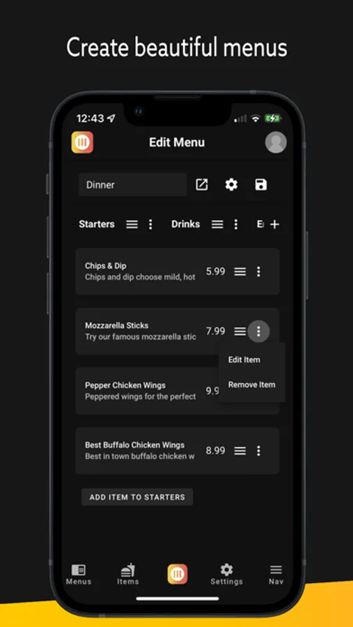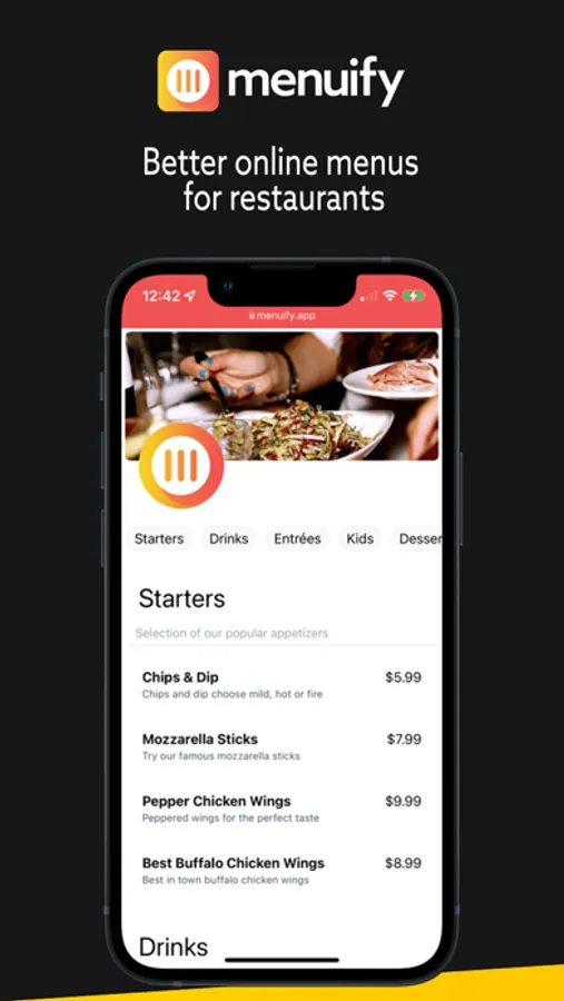 Menuify helps restaurants provide digital menus to their guests. With the Menuify app, you can create menus, manage your restaurant items and customize your restaurant's settings.