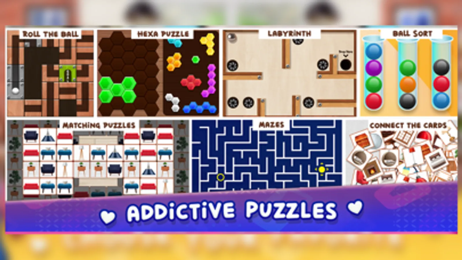 Enjoy various cleaning, fixing, washing, matching, daily chores - like cleaning the floor, cleaning windows, cooking a sandwich/cooking breakfast, Dirty Toilet cleaning, Messy house cleanup, Find the right matching sock, shoe, and flipflops, fix the floor, fix the wallpaper, Messy house cleanup activities, Swimming pool cleaning, Quote Coloring pages, Grass Mowing, Paint by number coloring pages, Color by number, Mosaic/Pixel coloring, Classic Labyrinth, Mazes and More fun games to earn coins and start your Home decoration journey! Also, we have addictive different fun puzzles like Jigsaw puzzles, Word Connect, Word Search, Word Cross, Ball Sort Puzzle, Block Hexa Puzzle, TileDom - Matching Puzzles, Roll the ball, Connect the cards, and many more interesting puzzles to earn the coins and transform your house into a luxurious mansion. Everyone has dreamed of their homes be like Princess House, especially all girls out there, we have covered this theme too, Princess House Decor into this game, hope you all would like this Royal House theme idea too.
