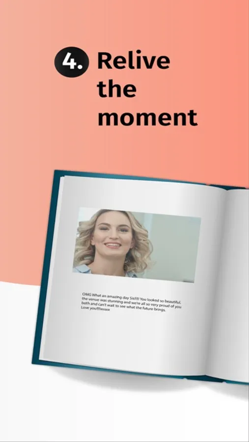 Consider the Fliick app your personalised memory hub. Here, you can collect and store all your guest messages and curate your one-of-a-kind guestbook. Use the app to scan over the photos within your memory book and watch as the static images transform into immersive video messages.