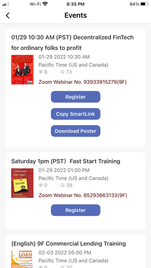 9 Fortunes is a platform for users in US and Canada. It is for everyone and provides free access to registering for and attending educational online events. Users can easily sign up for accounts, communicate with others through group chats, register for and attend online events & conferences, share news & event promotions, and so on. Event notifications help to remind users when events are about to start. Easy, convenient and efficient.