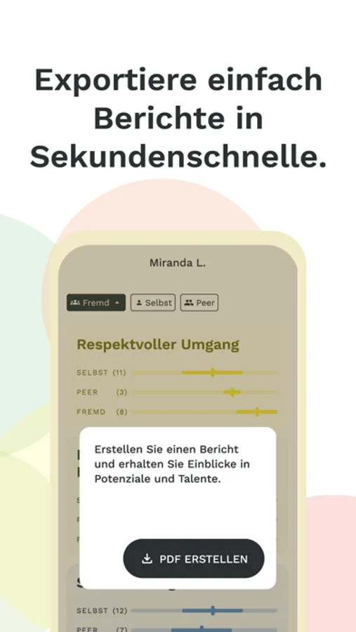 In Sekundenschnelle können Reports der überfachlichen Kompetenzen generiert werden, die Einblick in den Kompetenzstand, die Talente und Entwicklungspotentiale einzelner Personen oder ganzer Teams ermöglichen.