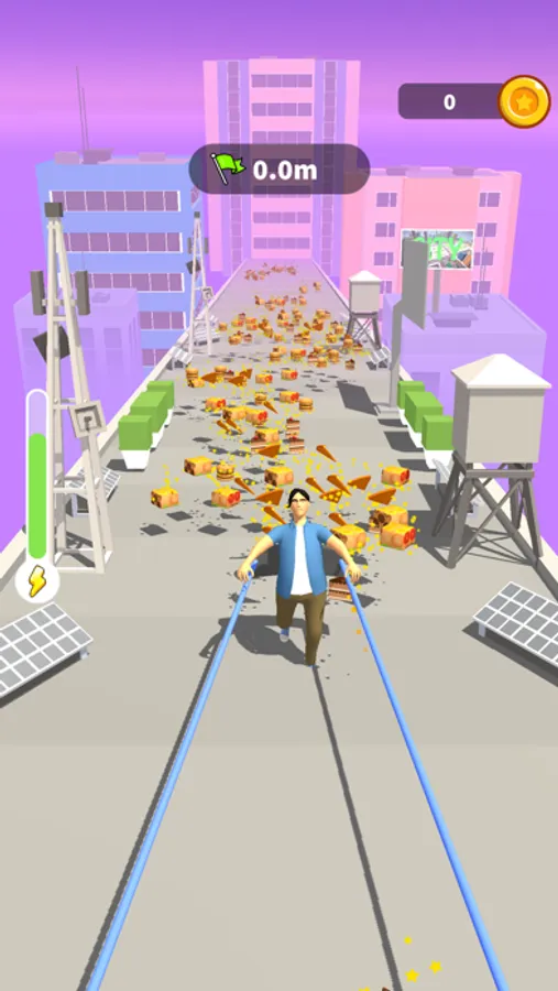 Stretch with the slingshot as much as you can and eat foods as much as you can while stretching, and get fat well. Throw him to demolish buildings. The fatter are better, the more damage you can do. Make money, Upgrade and continue for bigger buildings.