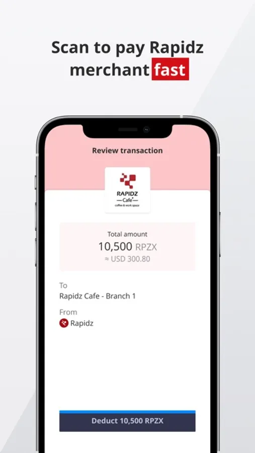 Making a payment with cryptocurrency is made so convenient on Rapidz Pay app that you can simply scan, collect and go! No waiting time required for any payments with our merchants.