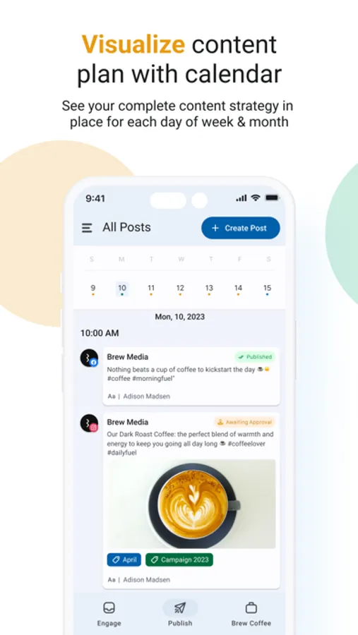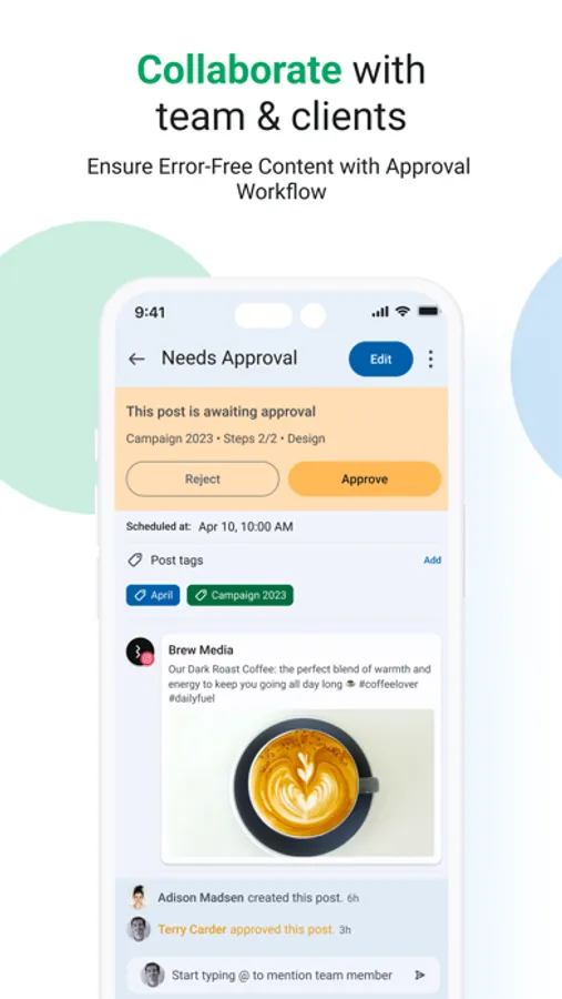 - View, edit, and approve your team’s posts with one tap