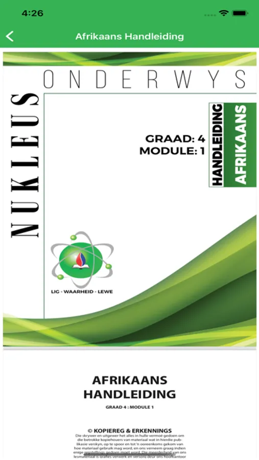 Vanaf 2002 is Nukleus Onderwys se leermateriaal beskikbaar vir leerders regoor ons land.Hierdie hoë gehalte leermateriaal is nou ook elektronies beskikbaar in die Nukleus applikasie. Maak vandag die regte keuse. Hoë standaard onderrig in jou taal.