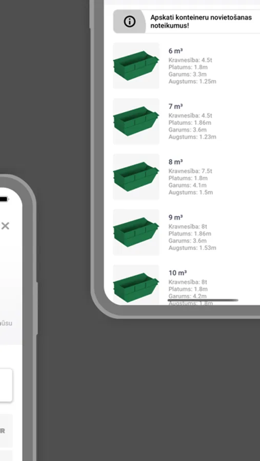 - Norādi atkritumu tipu, konteinera izmēru un piegādes adresi;