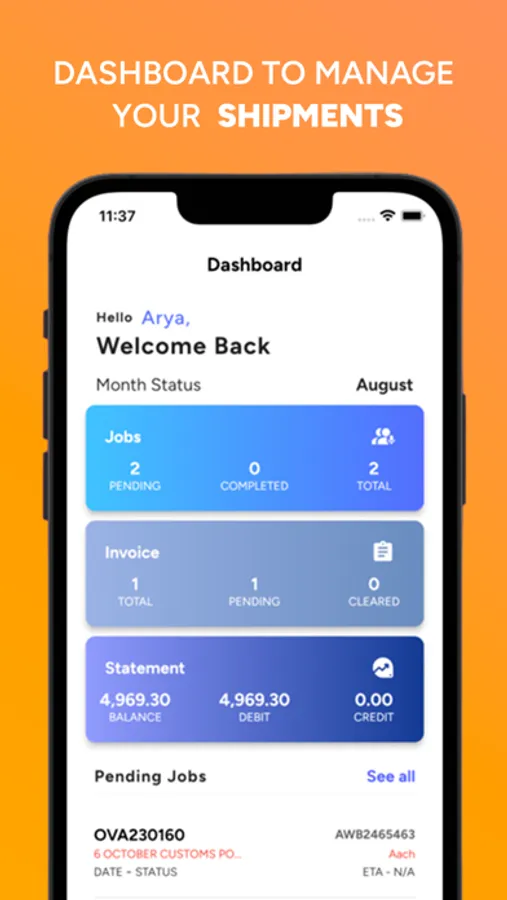 1. The Shipments: It lists the no of running shipments, delivered shipment, and the delivery status of the ongoing shipment