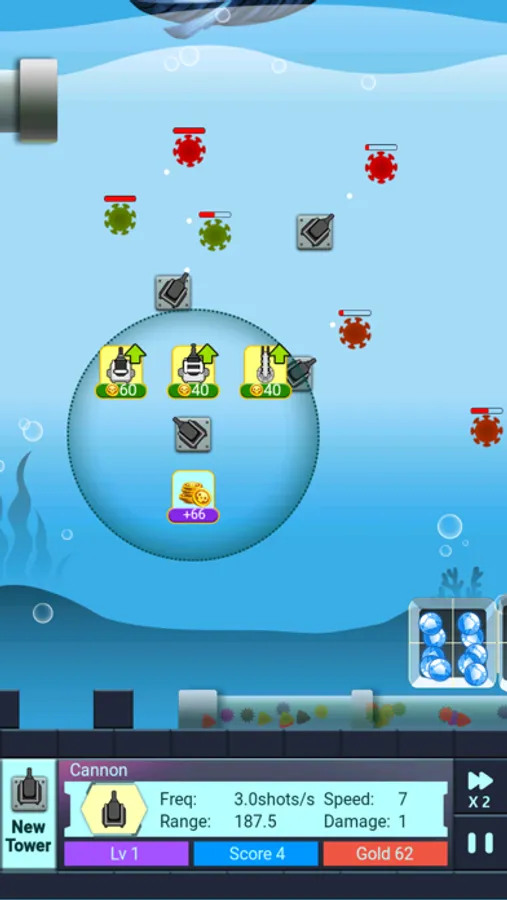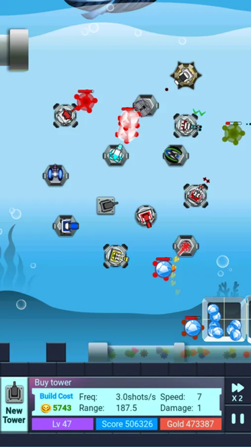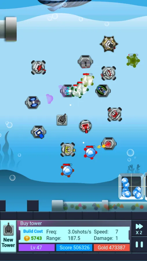 More than 40 characteristic turrets are used in turn, with different functions (machine gun, sniper, electromagnetic, plague, freeze, laser, etc.).Each turret has its own unique effect.)