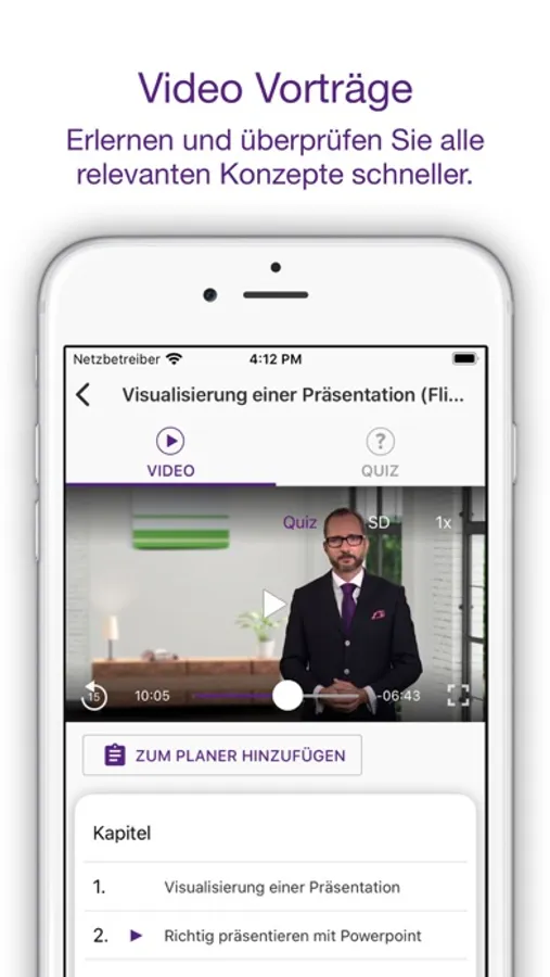 - Videovorträge: lernen und überprüfen Sie alle relevanten Konzepte schneller und einfacher