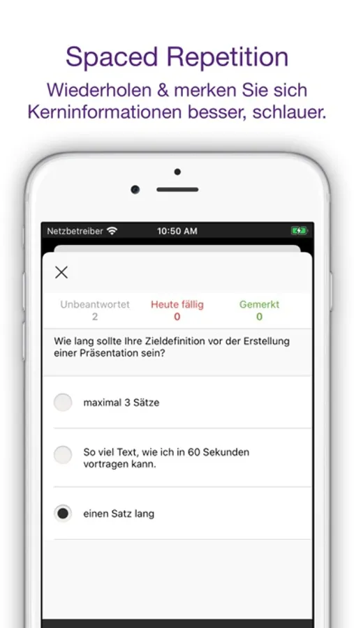 - Spaced Repetition Quiz: stärken Sie Ihr Wissen mithilfe eines intelligenten Lernalgorithmus