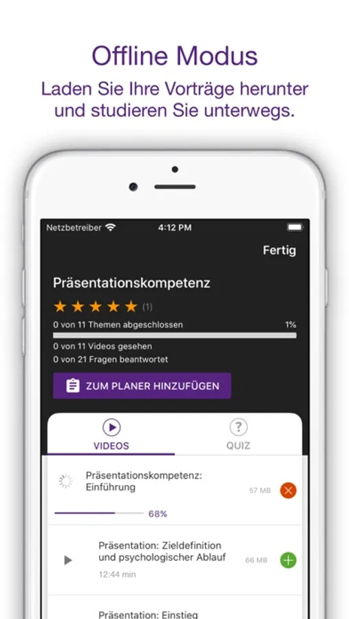 - Offline-Verfügbarkeit: lernen Sie auch unterwegs