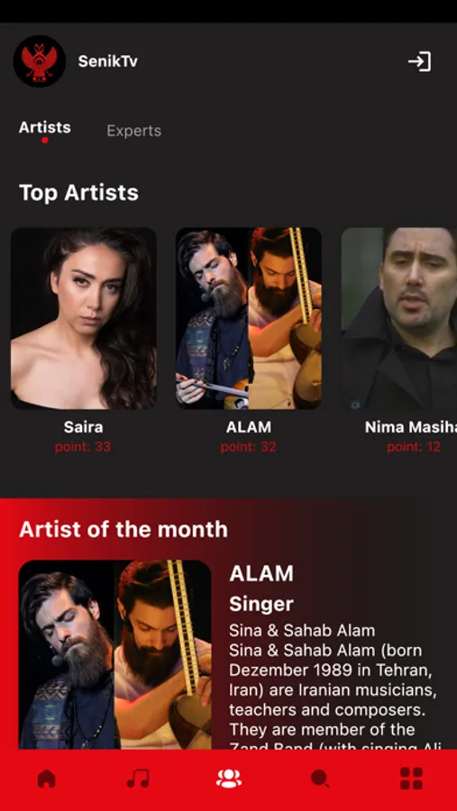 SenikTV will have regular Top Artists assessing by sum of medals given by experts and likes of the registered users.