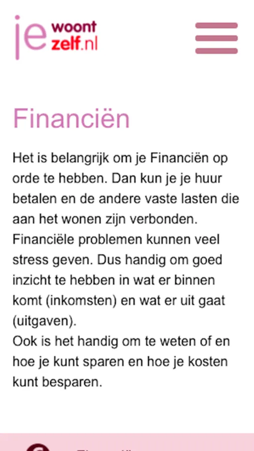 Als je zelfstandig gaat wonen moet je heel wat zaken zelf regelen. Deze app biedt informatie en checklists die je kunnen helpen als voorbereiding op zelfstandig wonen.
