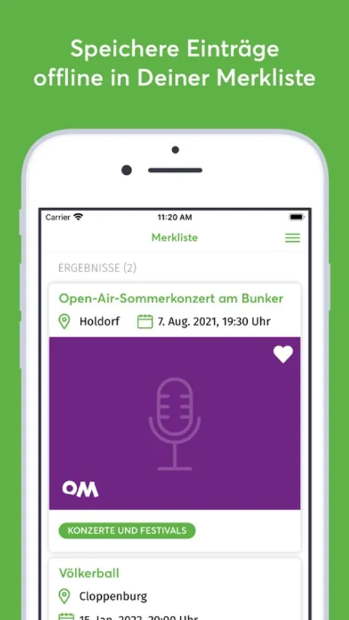 In einer Merkliste findest du deine individuellen Highlights. Markiere interessante Freizeittipps und Routen dazu einfach mit dem grünen Herz.