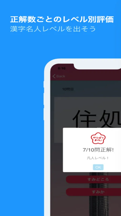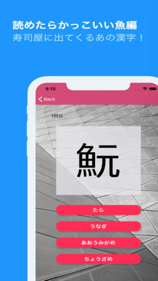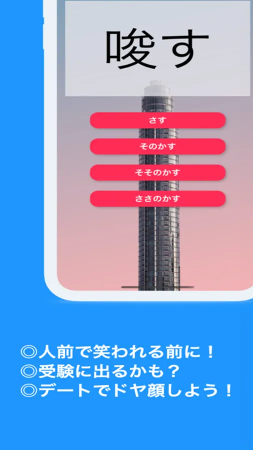 "日常生活に出てくるけどちょっと読めない漢字"のクイズアプリです。