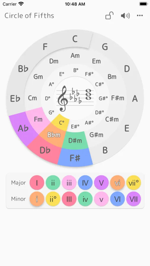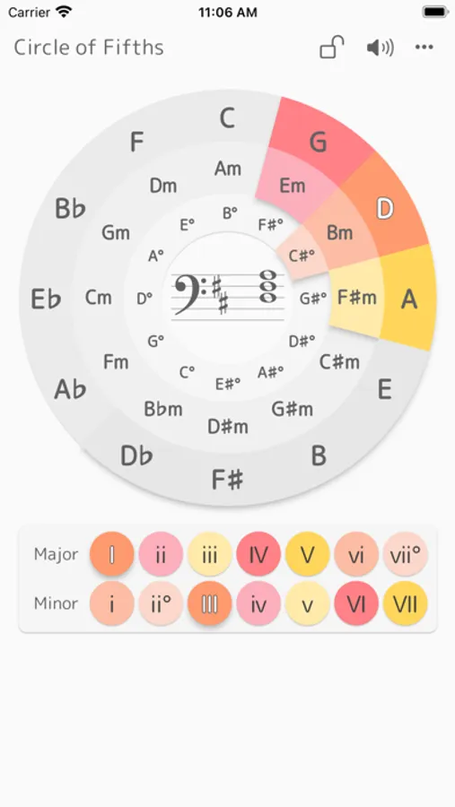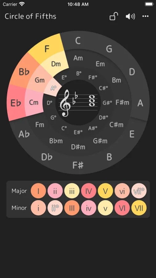 - A sounded chord/arpeggio for each key (With mute/unmute toggle)