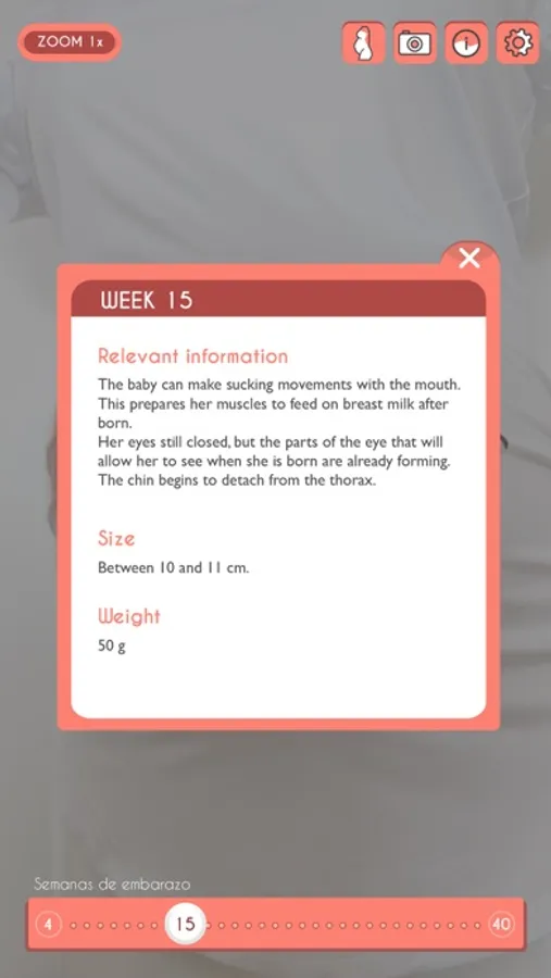 • With information on approximate weights and measurements of the baby, moments of its development and recommended medical tests. Without stress!