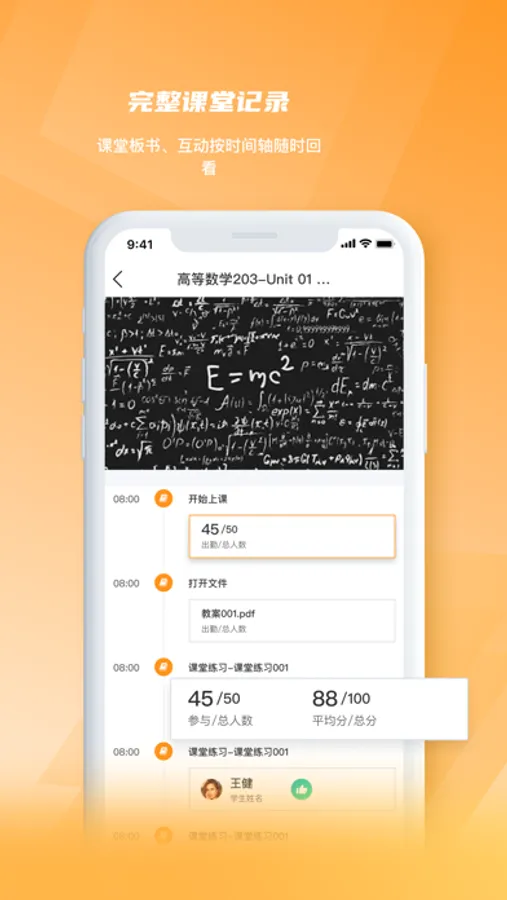 7、课堂报告:课后可以查阅课堂学习情况,包括教师授课内容以及个人参与课堂互动的表现记录。