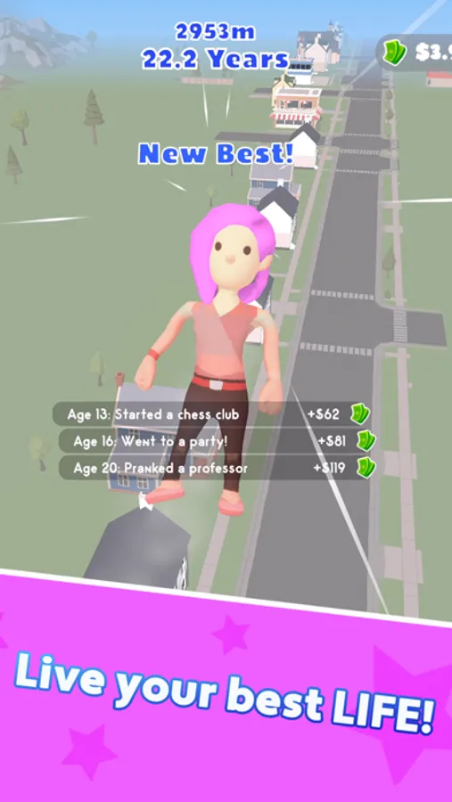 Choose your avatar, unlock upgrades and build your character. Time your pushes to get as far in life as you can!