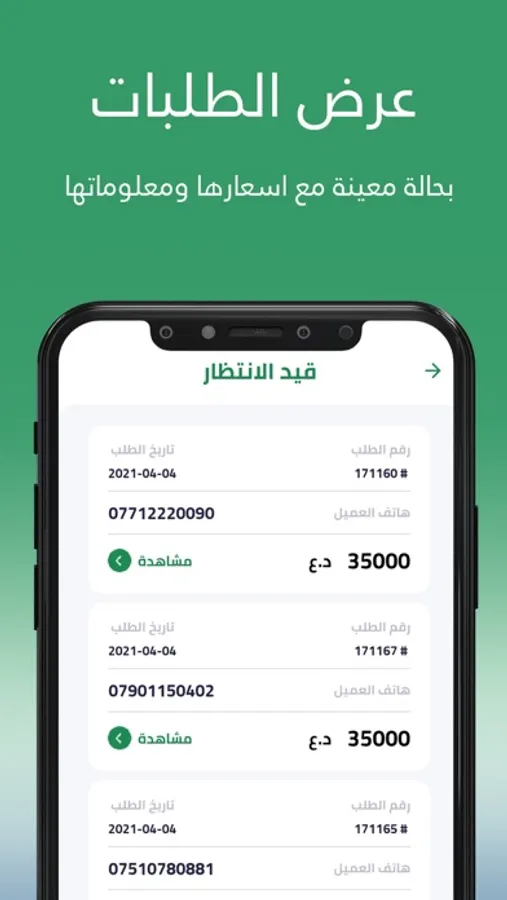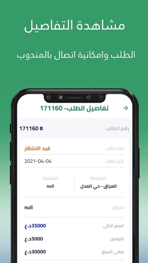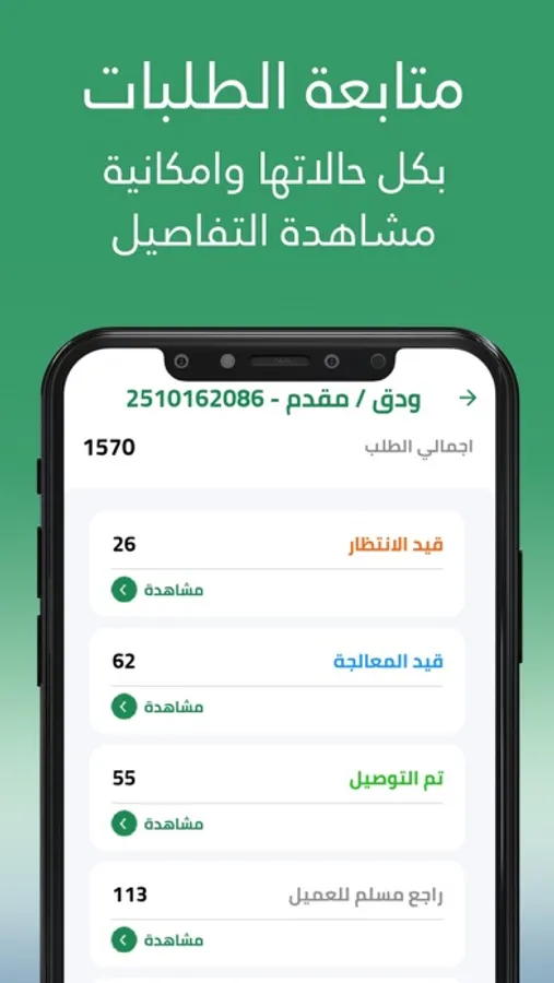 يمكنك متابعة الطلبات الخاصة بك من خلال التسجيل في التطبيق وبعدها فتح المستخدم وادخال رمز ال PINCODE الخاص بك لمتابعة كل الوصولات بكل حالاتها وامكانية البحث والاستعلام عن الحالة للوصل مع نظام اشعارات عام لايصال حالة الطلب الى العميل