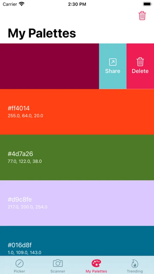 -Share the colour's RGB or HEX with your friends.