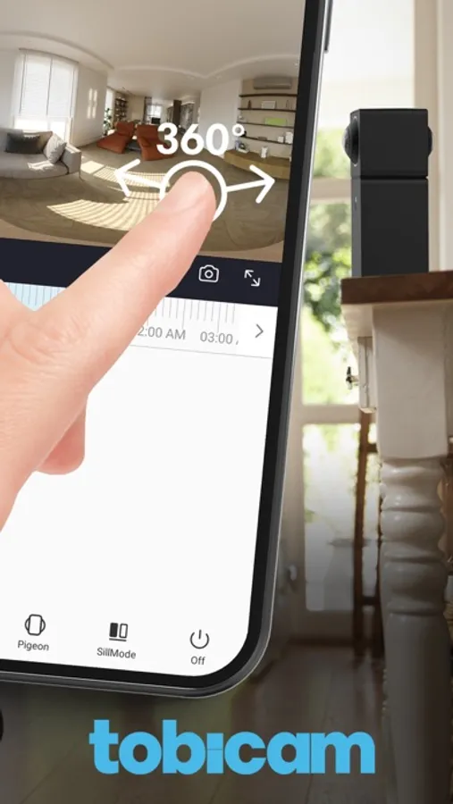 Together with Tobicam this app shows you wider angles than 360° using Tobicam's innovative Pigeon dual lens system. Unlike calling rotating cameras or fisheye camera as 360° camera Tobicam is a true 360° camera that shows you what other cameras can’t, so you see more of your home, yard, front door, and driveway and that’s equally effective in pitch dark.