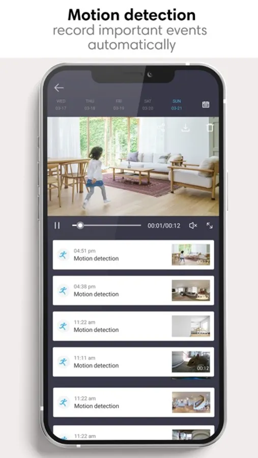 With its all-direction coverage Tobicam also works better in terms of motion detection in the area that it’s guarding. The app groups motion triggered video clips and that are safely recorded in a no fee no subscription 14 days rolling cloud storage - FREE.