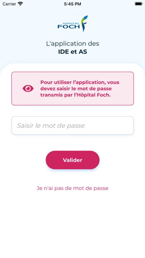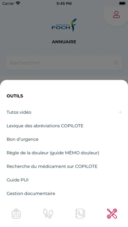 Cette application est un service à destination des soignants du CH de Foch permettant d'accéder facilement à toutes les informations utiles.