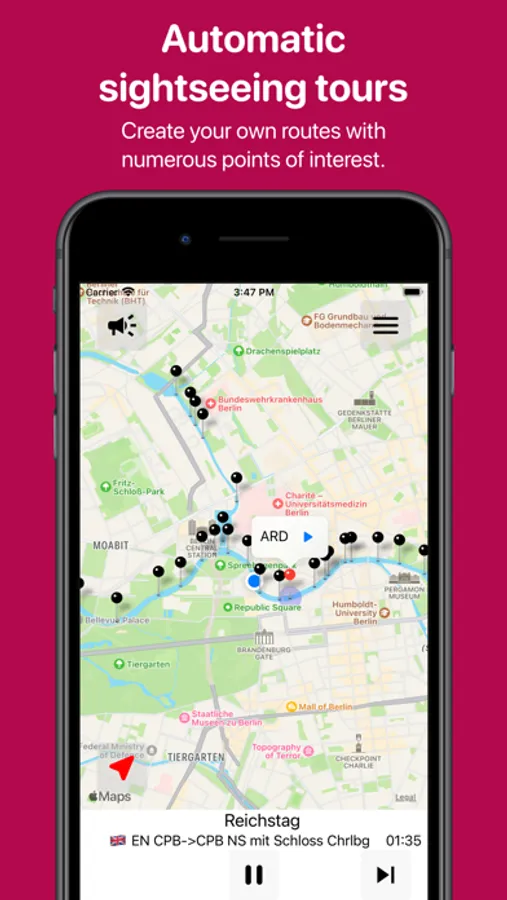 GPS Audio Player is an app that plays announcements automatically during sightseeing tours.