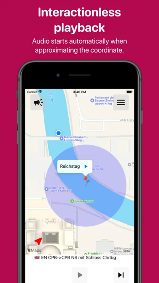 Create your own routes with audio tracks and playback is auto-magic when approximating the coordinate of the points of interest.