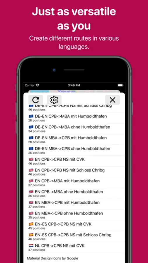 To create your own routes, you can store the audio files with the help of the "Files App" under "On my iPhone" in the folder "GPS Audio Player". Here you will find a so-called json file, which you can copy as an example to link your audio files with your route points. For detailed instructions please visit https://gpsaudio.app