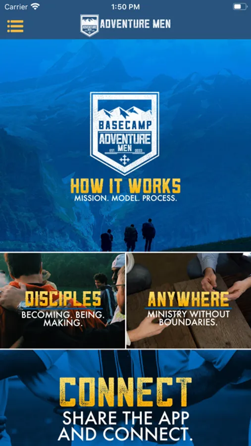 A powerful men’s ministry tool for churches ministry groups, or organizations. Adventure Men Men's Ministry is built on the principles of discipleship, small groups, and leadership training. Equipping Christian men to become disciples of Jesus Christ through a complete men's ministry solution.