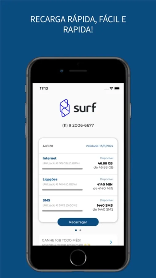 O Aplicativo é para você, usuário Surf Recarga acessar os serviços de recarga, consulta de saldo (voz, internet e de recarga) e outros, de forma rápida, simples e na hora que quiser.