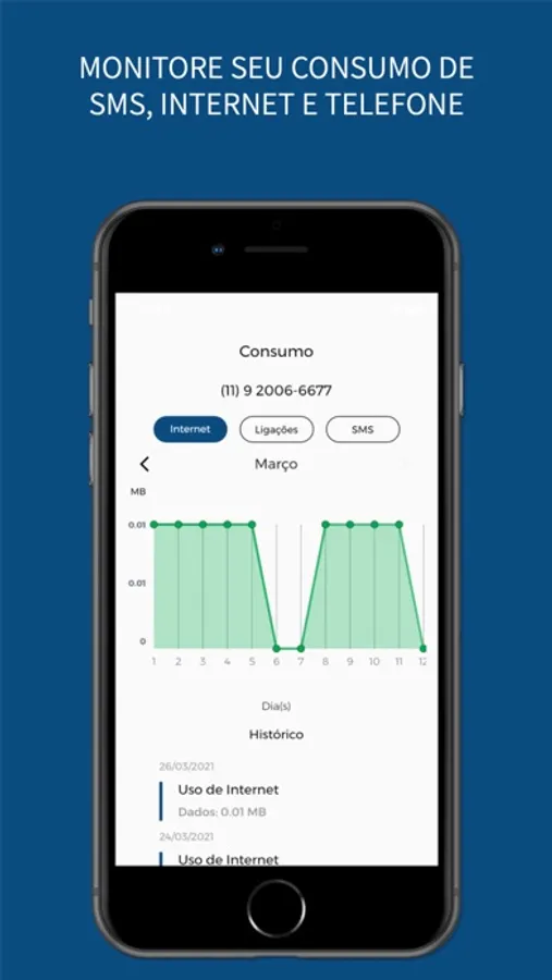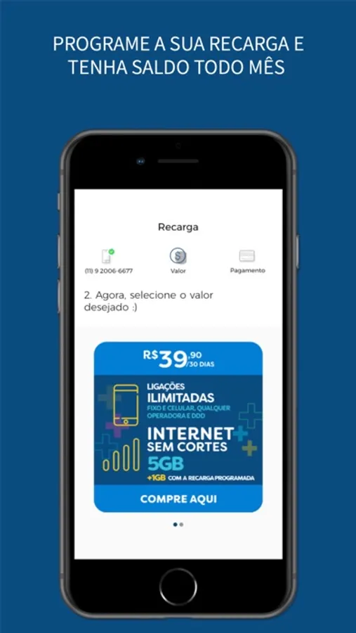 - Histórico das recargas realizadas online (aplicativo, site e por SMS).