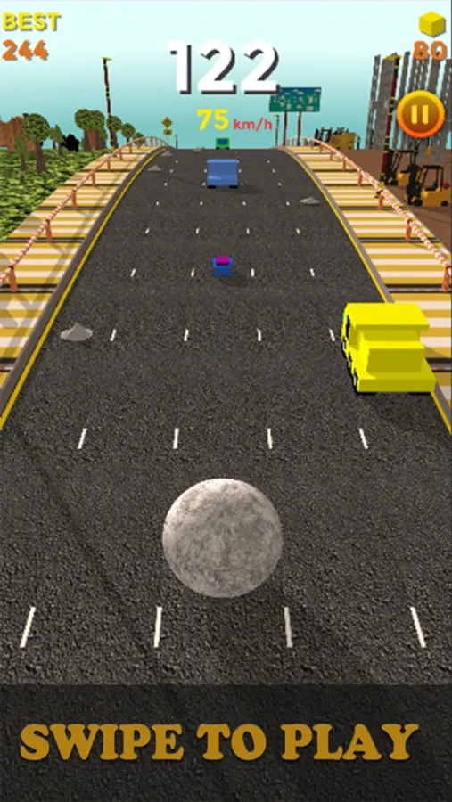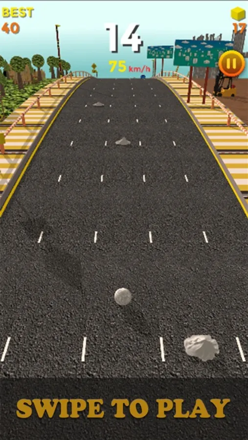 Swipe the concrete ball left or right as you try to dodge the obstacles and try not to hit anything on the way! Challenge your speed and see how fast you can swipe!