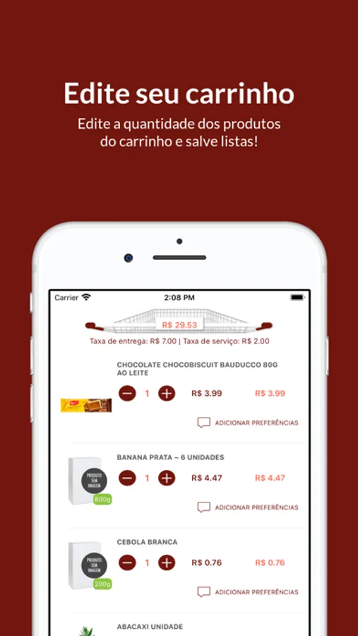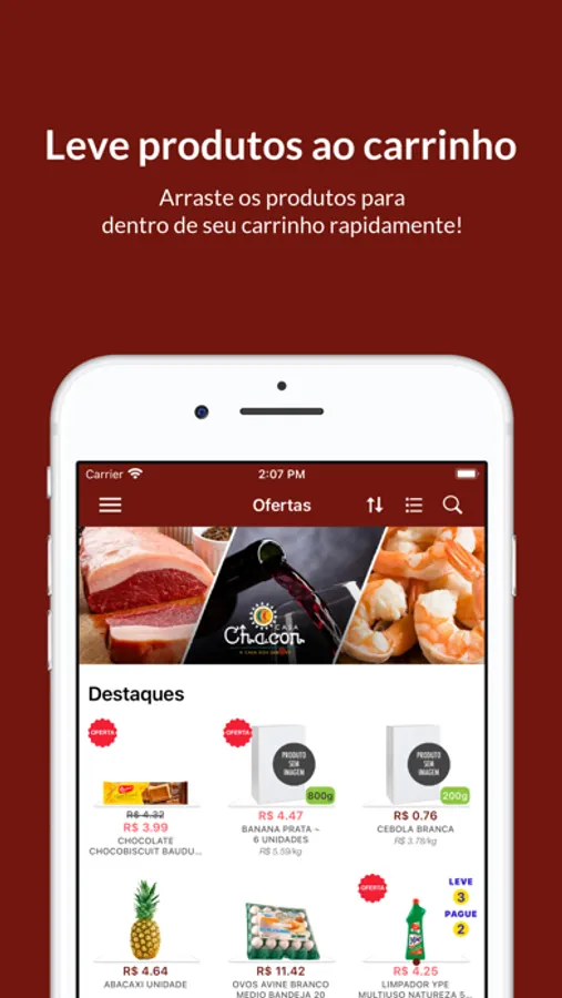• Adicionar produtos no seu carrinho com um simples tocar e arrastar.