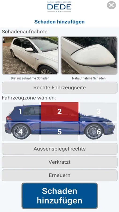 Es wurden viele Features wie zum Beispiel das Scanning mit integriert, um eine Erfassung von Daten nochmal zu erleichtern bzw. Fehlerquellen bei der Übertragung von Daten zu vermeiden. Sämtliche Schäden werden schnell und effizient mit realistischen Hersteller- und modellbezogenen Grafiken detailliert aufgenommen. Zusätzlich können hochauflösende Fotodokumentationen individuell pro Schaden hinzugefügt werden.