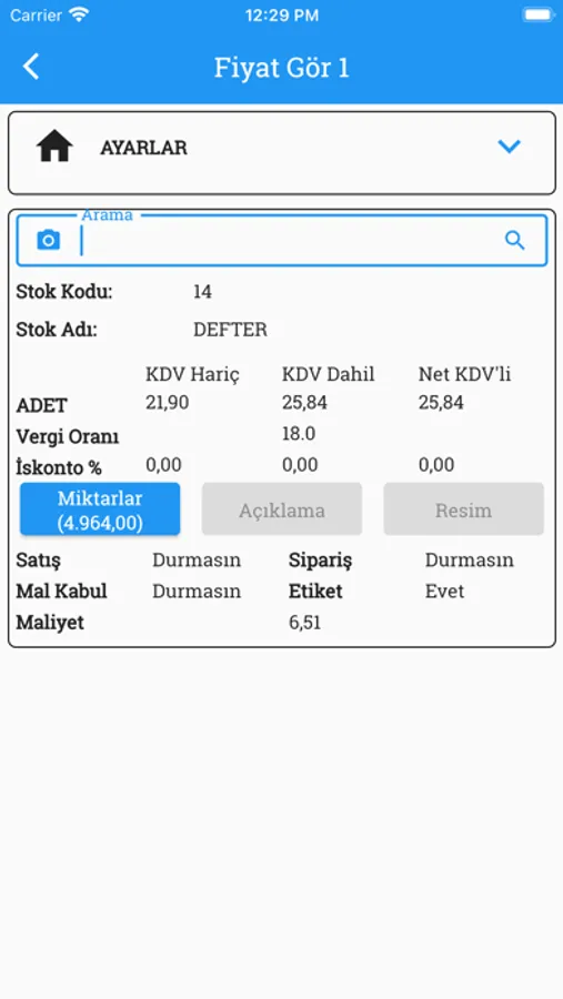 Fiyat gör ekranı ile istediğiniz yerden ürünlerinizin fiyatlarına, açıklamalarına ve depo bazında miktar bilgisine ulaşabilirsiniz.