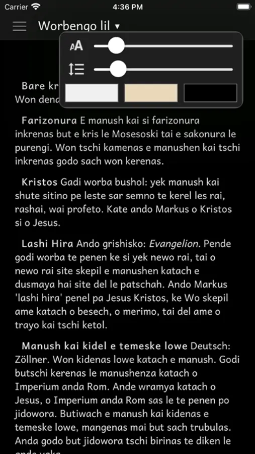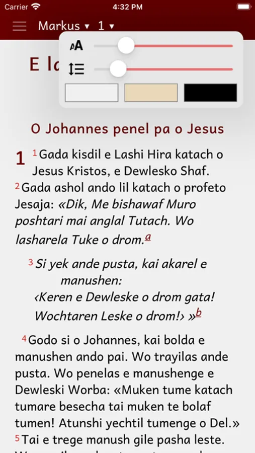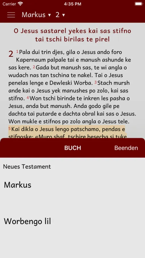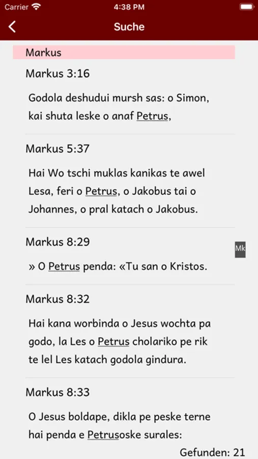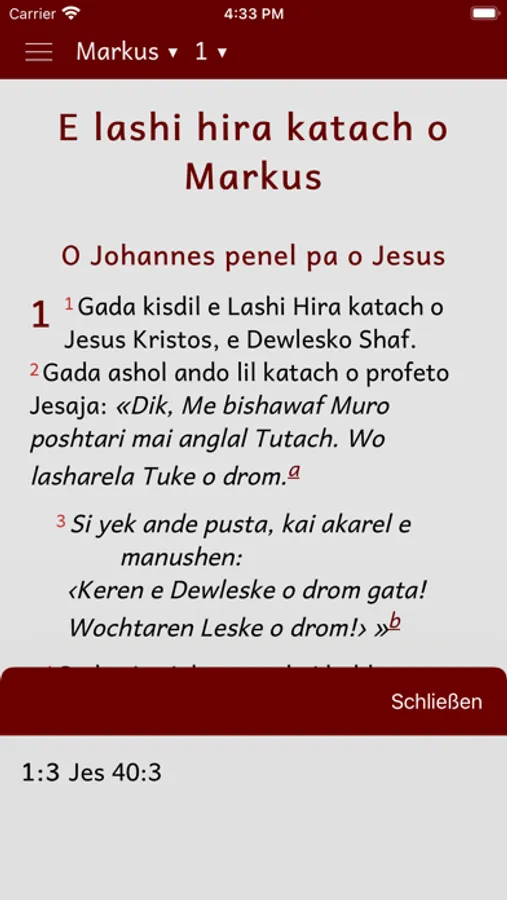 Diese App enthält das Markus-Evangelium übersetzt in Romani-Kalderasch. Der griechische Originaltext wurde im 1. Jahrhundert geschrieben. Markus, ein Nachfolger Jesu, berichtet darin über das Leben von Jesus.
