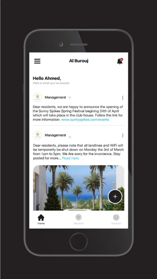 An all in one solution, ALBUROUJ App provides you with everything you need from ordering services, communicating with your neighbors, effectively and instantly reaching the community management to providing you with your unique identity badge for access control and managing your guests invitations.