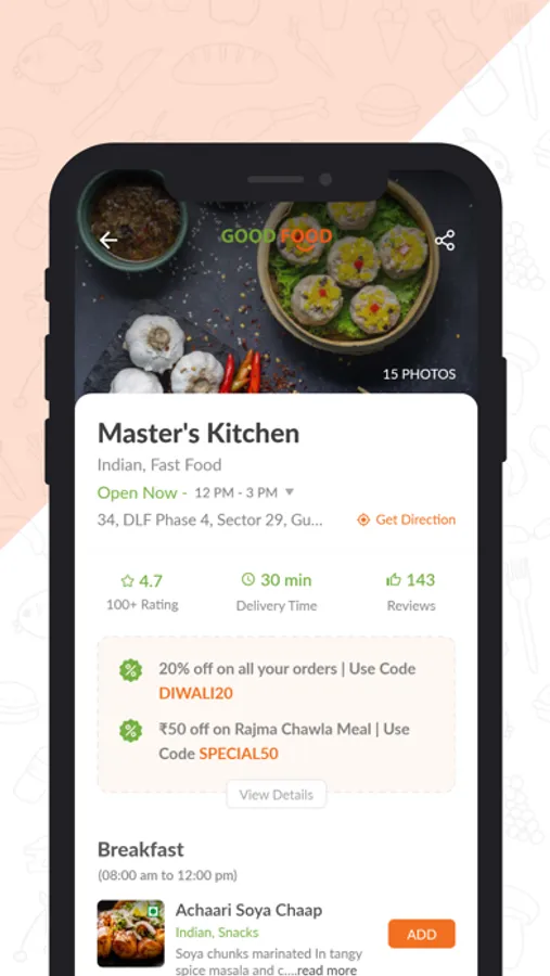 Our App GOOD FOOD connects you to the nearest home-chefs.