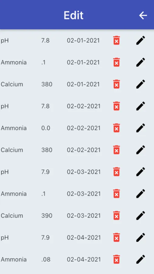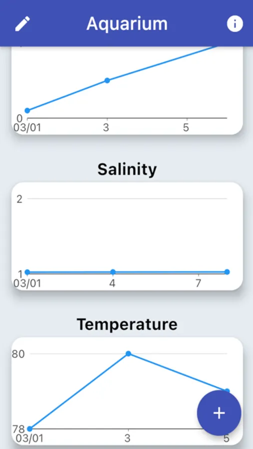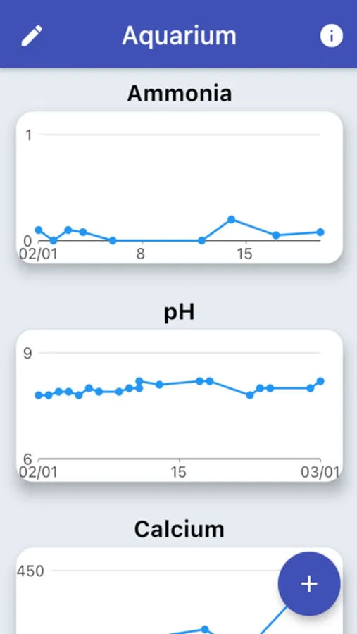 An easy to use app to track your aquarium water parameters. Great for fresh or salt water aquariums. View the data in easy to read automatically generated graphs. Edit or delete any existing test results. Water test results / parameters tracked include: