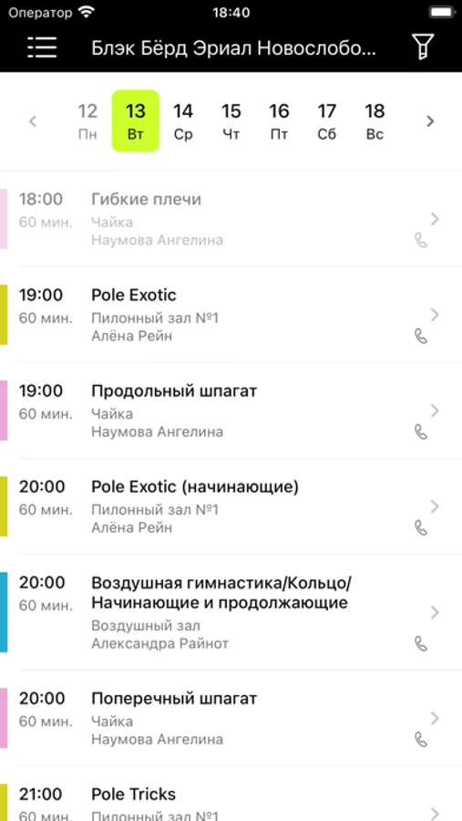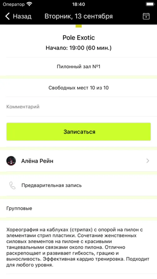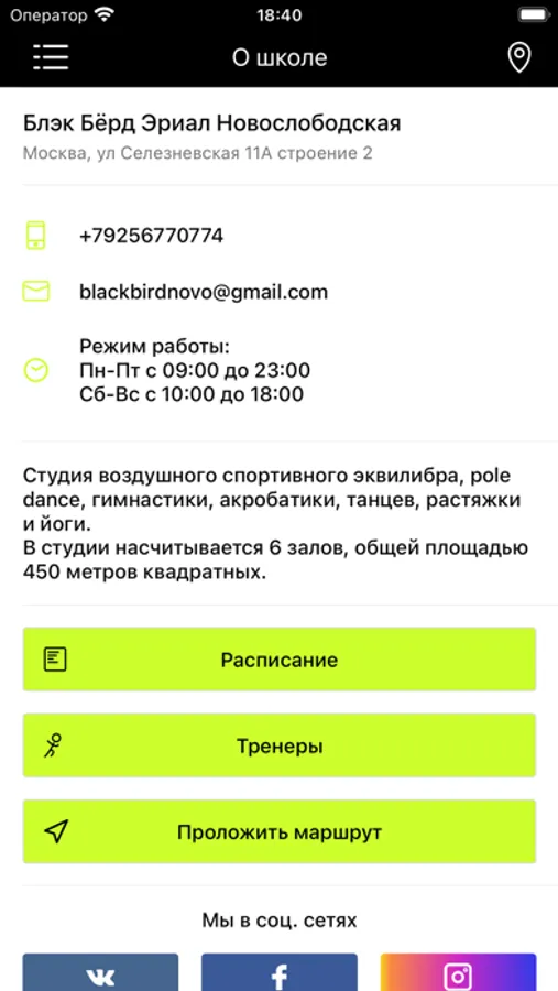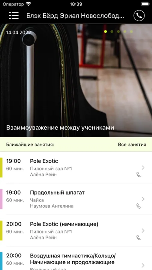 In the application you will find the current schedule, news, you can sign up for classes, pay for training and subscriptions, ask a question and get feedback.