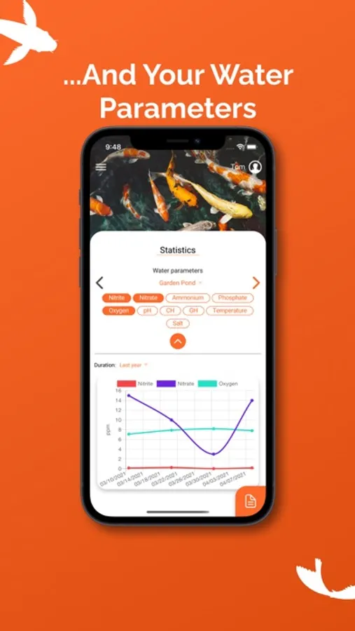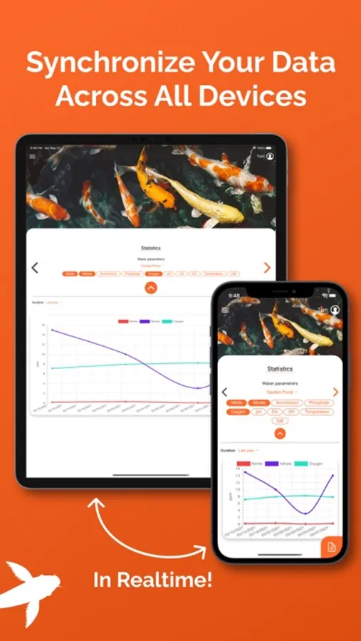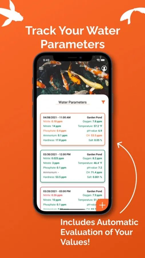 Create your koi as profiles in the app to always keep an overview of your koi population. You can save all important information about your fish, such as name, variety, age, size, weight and much more. The built-in growth history makes it easy to see how well your koi have grown.