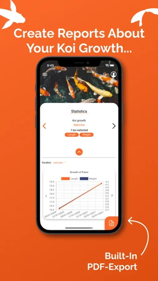 The growth of your fish and the water quality of your pond are very important for you as a koi owner. How nice would it be to see trends and developments in your water measurements and koi growth at an early stage? Thanks to our automatically generated charts you can easily see trends and the potential of your koi. It is also possible to create a PDF file so that you can share your success with others or create a seasonal report.