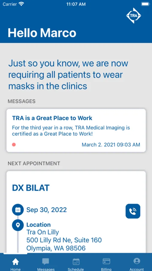 The TRA Medical Imaging app makes scheduling your imaging appointments quick and easy. Using the app, you can make your appointments, fill out any necessary forms or documents, and even check-in to your appointment using your mobile device, rather than waiting in the waiting room.